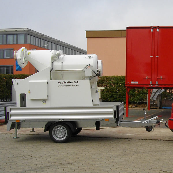 Основною умовою при створенні мобільної вакуумної установки VacTrailer S-2 було обмеження загальної ваги до 1500 кг, з можливістю перевезення автомобілем середнього класу та обслуговування однією людиною. Це рішення дозволило успішно використовувати вакуумну установку для збору просипів різних матеріалів і утилізації пилу практично у всіх галузях промисловості, де виробничі конструкції не дозволяють встановити потужне і габаритне вакуумне обладнання.